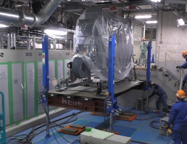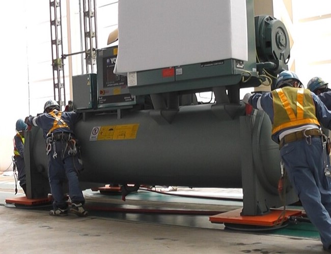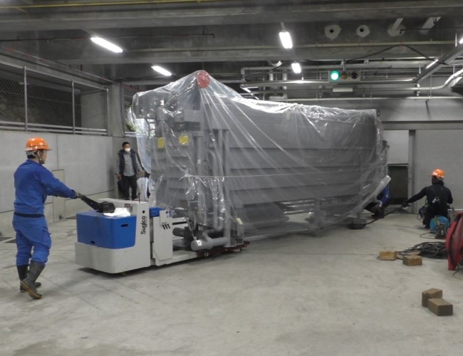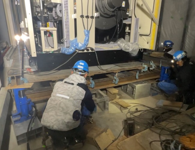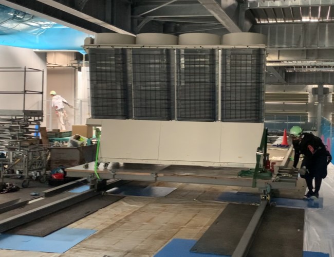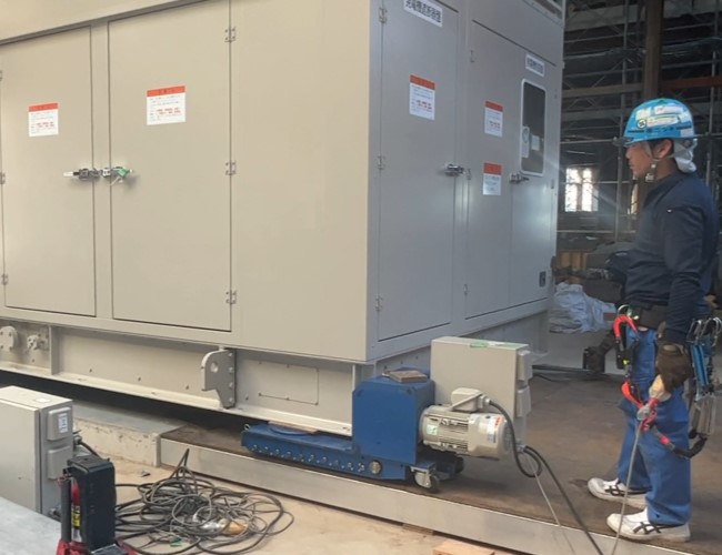 それらの機材は作業員の体の疲労軽減をはじめ、作業人員の削減や品質を確保し、他社には真似できない重量物運搬据付を行ってきました。